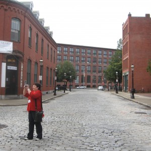 The last morning of the Quilt Tour we toured Boston by bus and got to visit historic places like the Old North Church where Paul Revere rang the warning bells to announce that the British were coming! We also visited Faneuil Hall Marketplace, where we saw lots of international food stalls and pushcarts full of Bostonian goodies. Marla and I figured that we walked about 4 miles before taking the water taxi back to our hotel…..we enjoyed a pastry and coffee/tea at the CHEERS bar too. It was just GREAT FUN! I loved the water taxi right – it was raining and the lights of the evening reflecting off the water was just BEYOND BEAUTIFUL!